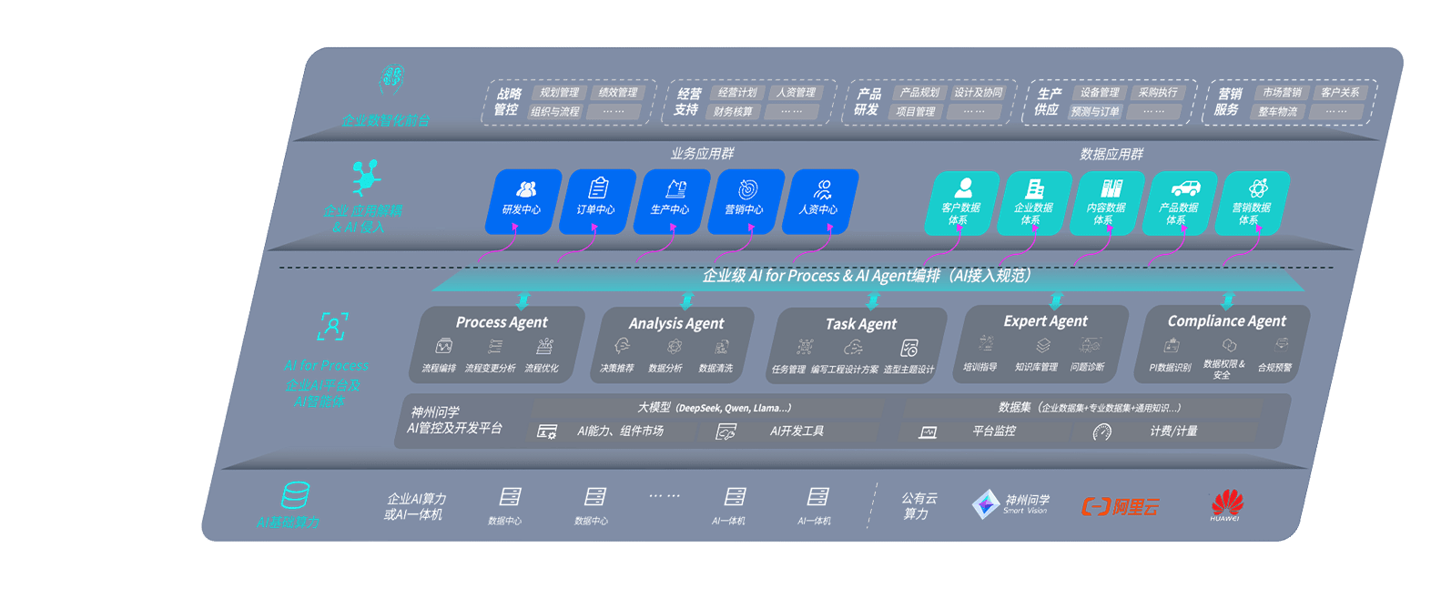 端到端的一站式AI工作空间深度融合了从企业战略规划到日常经营的全流程业务板块,,定向解决车企内部领域多、、、、部门多、、、、链条长、、、、场景碎片化等难题,,,,支持车企快速构建以AI为核心的生产力写作体系,,实现任务执行与AI能力的无缝集成与交互